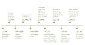 The lengthy development process of the CCi was rewarded in 2010 with the first major order for 3,500 units from retail chain Wilko. The following year, Volumatic was awarded the prestigious Queen’s Award for Innovation for CCi. Major orders for CCi followed from retailers, including the largest to date from supermarket chain Morrisons, which placed an order for 11,500 units in 2012.
