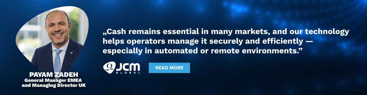JCM Global is a world leader in transaction technologies. From its global network of offices, the company provides award-winning solutions such as bill validators, note recyclers, printers, systems solutions and more.